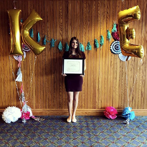 Experiential Education Coordinator Emily Lohr, along with Kappa Epsilon adviser and Professor of Pharmacology Dr. Paula Witt-Enderby, current Kappa Epsilon President Stephanie Franciscus, Kappa Epsilon Luncheon Chairs Antonietta Paneccasio and Kajal Patel, and Kappa Epsilon alumni put together a basket for the raffle in Katie’s honor and had a plaque created commemorating the first-ever Katie Ansell Award to recognize a Kappa Epsilon sister who best exhibits Katie’s spirit and strength.