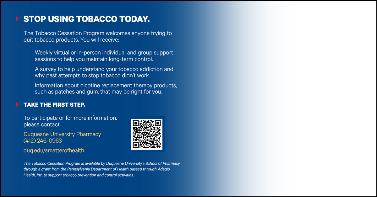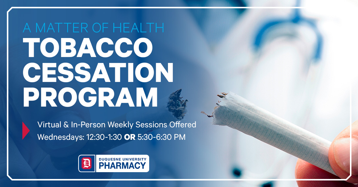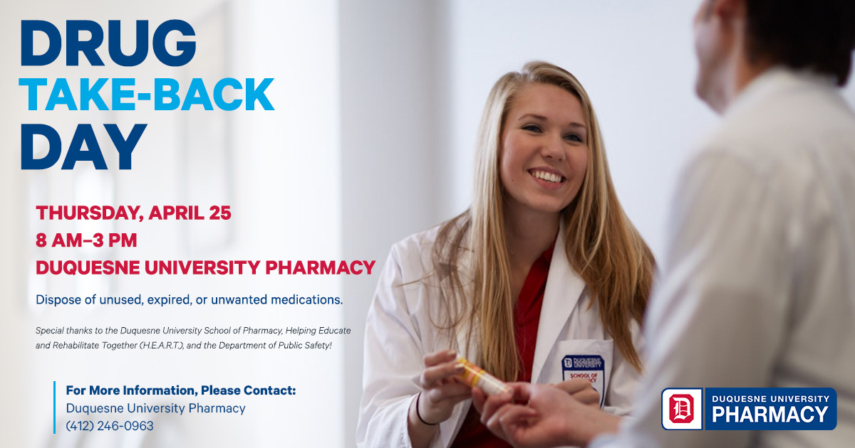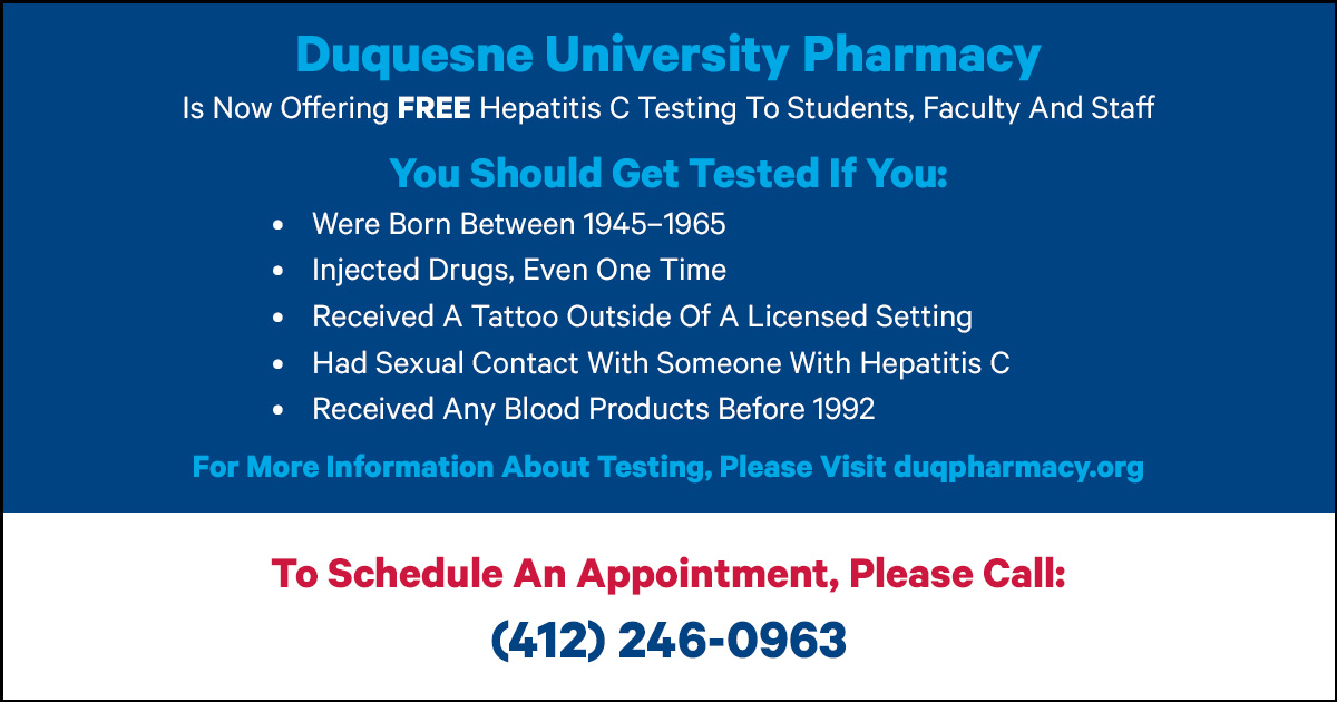 I worked with the Duquesne University Division of Marketing and Communications graphic designers to create a logo to match Duquesne University branding but with a nod to pharmacy with the shape and look of a pill.
